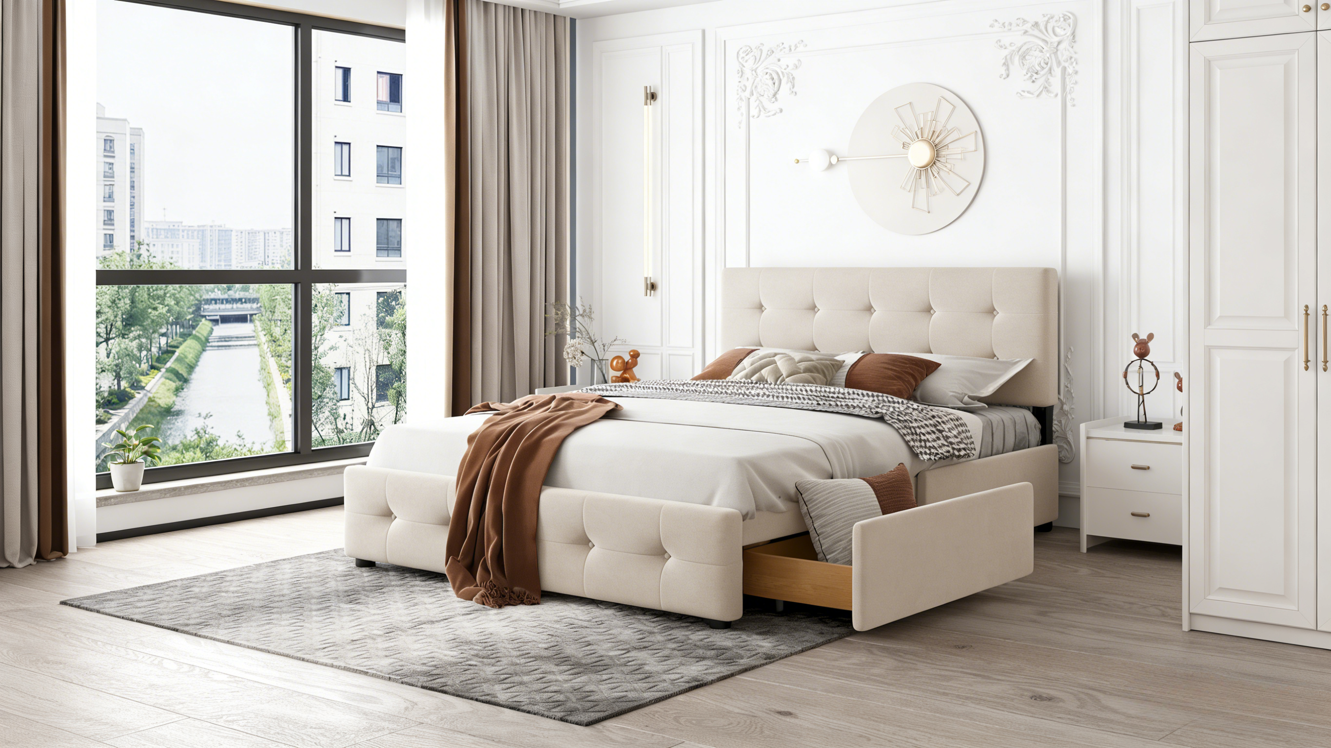 This bed is conceived as a complete bedroom anchor for the modern living.It's more than a place to sleep; it's a thoughtfully designed piece that helps organize and define your personal retreat, supporting a lifestyle that values both tranquility and smart utility.